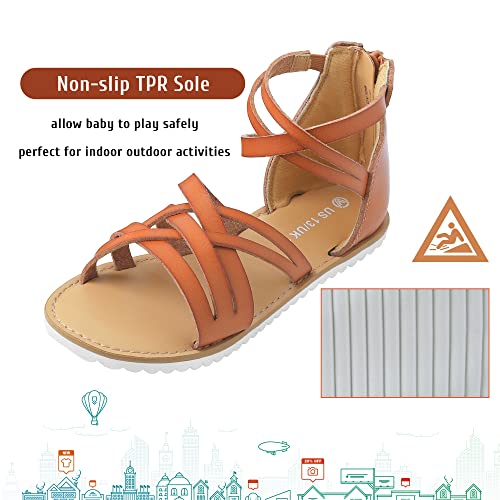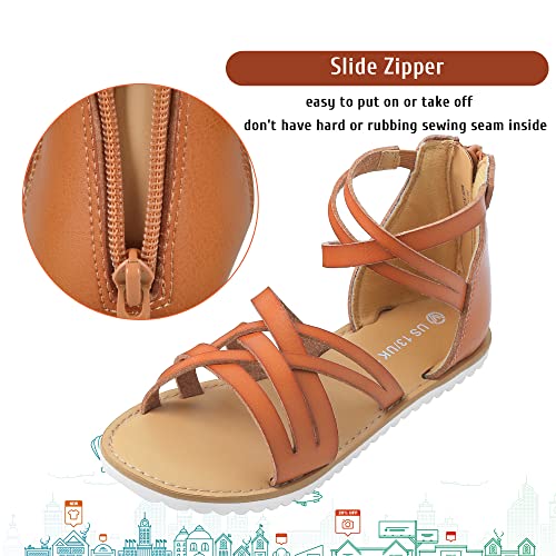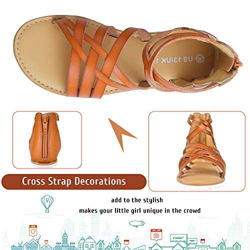 Harebell Gladiator Sandals for Girls Cross Strappy Gladiator Sandals with High Back Zipper Girls Summer Dress Sandals Brown 5