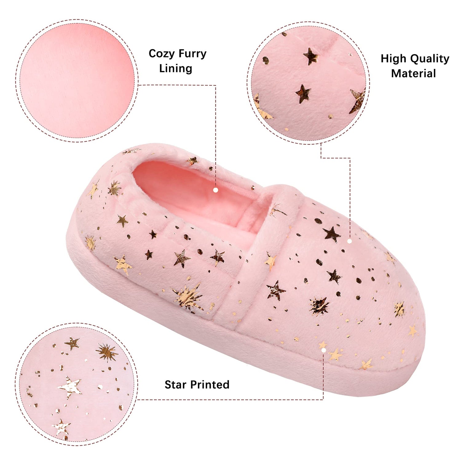 Nice Gift for Kids and Machine Washable: Girls House Shoes are easy to take care, cute star design make them easy to get the love of kids, which make slippers a perfect daily gift for your kids and friend's child.