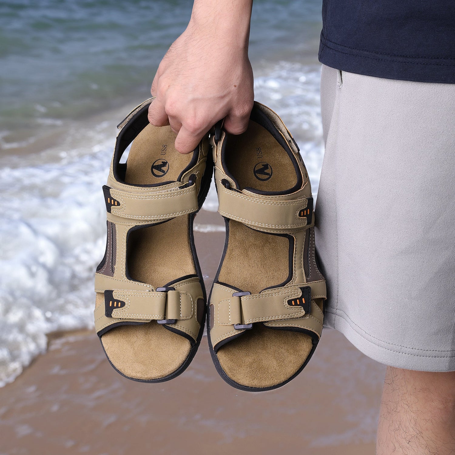 Men's Open Sandals With Buckle Strap, Durable Non Slip Outdoor Hiking Trekking Sandals, Comfy Beach Shoes, Spring And Summer